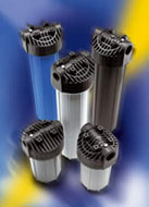 standardowy filtr narurowy montowany na rurze doprowadzającej wodę do domu lub bezpośrednio przed urządzeniami z przyłączem ½", ¾", 1", 1¼", wysokość 9¾", 20";