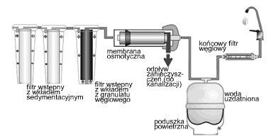 Trzystopniowy system działający na zasadzie odwróconej osmozy, montowany pod zlewem.